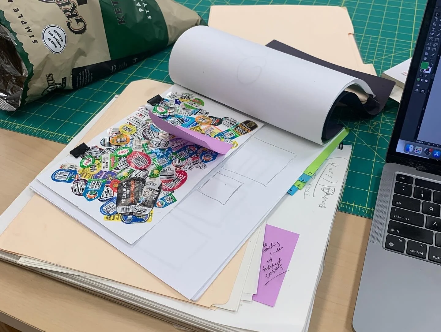 Once I had the concept, I started using InDesign and Illustrator to put together the pages for the book. I wanted the book to be engaging, so I added different things for readers to interact with.