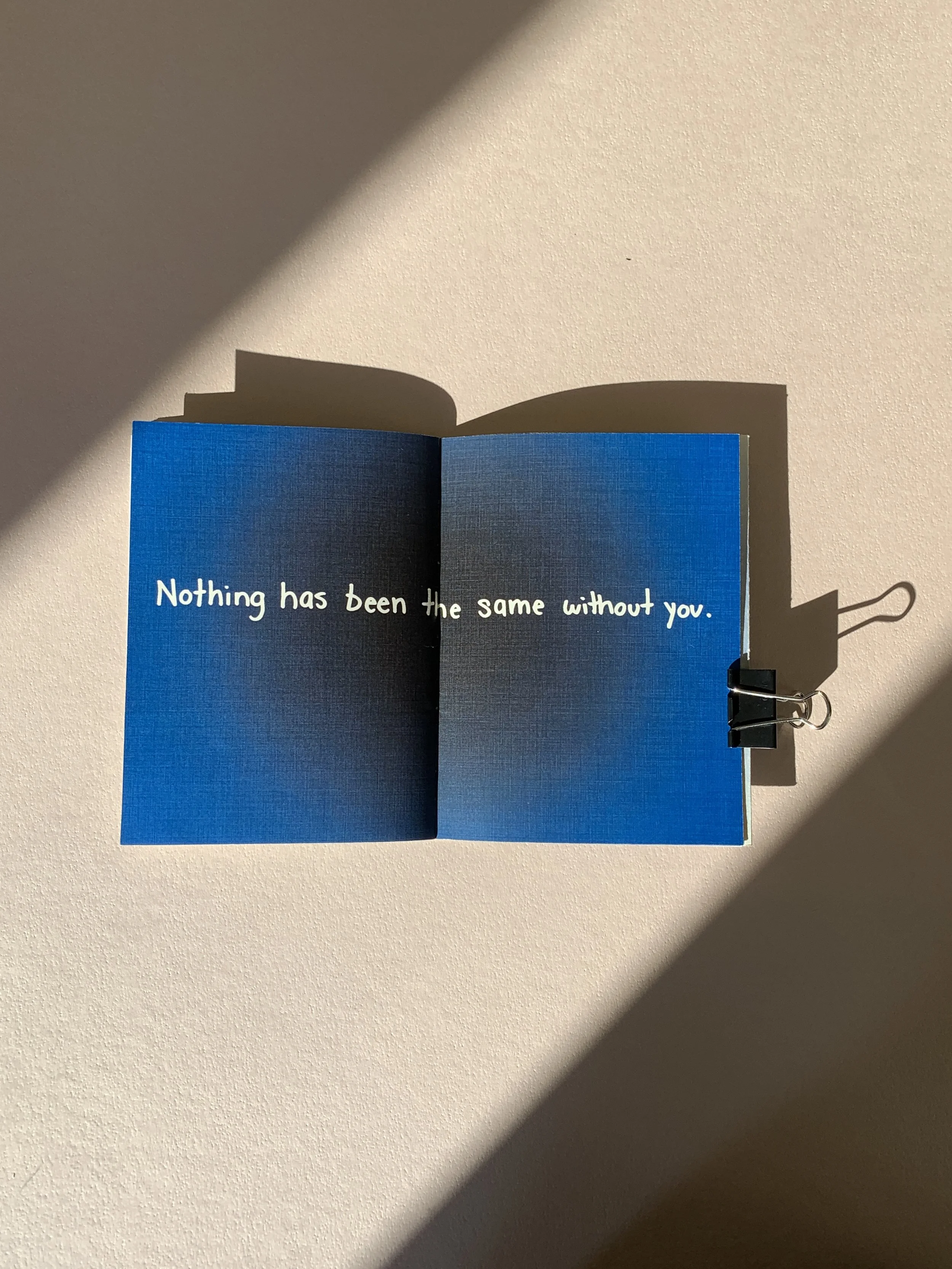 This project is a small book publication for my Type class. The task was to create a book that represents a word that we were assigned. I was given the Portuguese word “saudade. Saudade means, “a feeling of longing, melancholy, or nostalgia that is supposedly characteristic of the Portuguese or Brazilian temperament.”